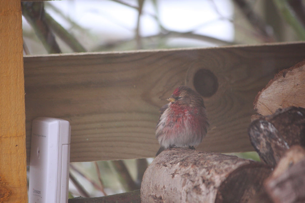 Another thing to look out for with sick birds is messy feathers. This little redpoll doesn't look too well